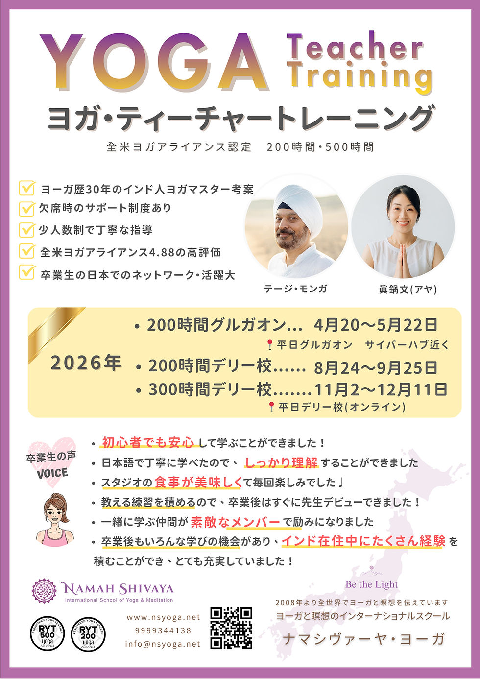 ナマシヴァーヤ・ヨーガ ヨーガと瞑想のインターナショナルスクール Contact : info@nsyoga.net / +91 9999344138